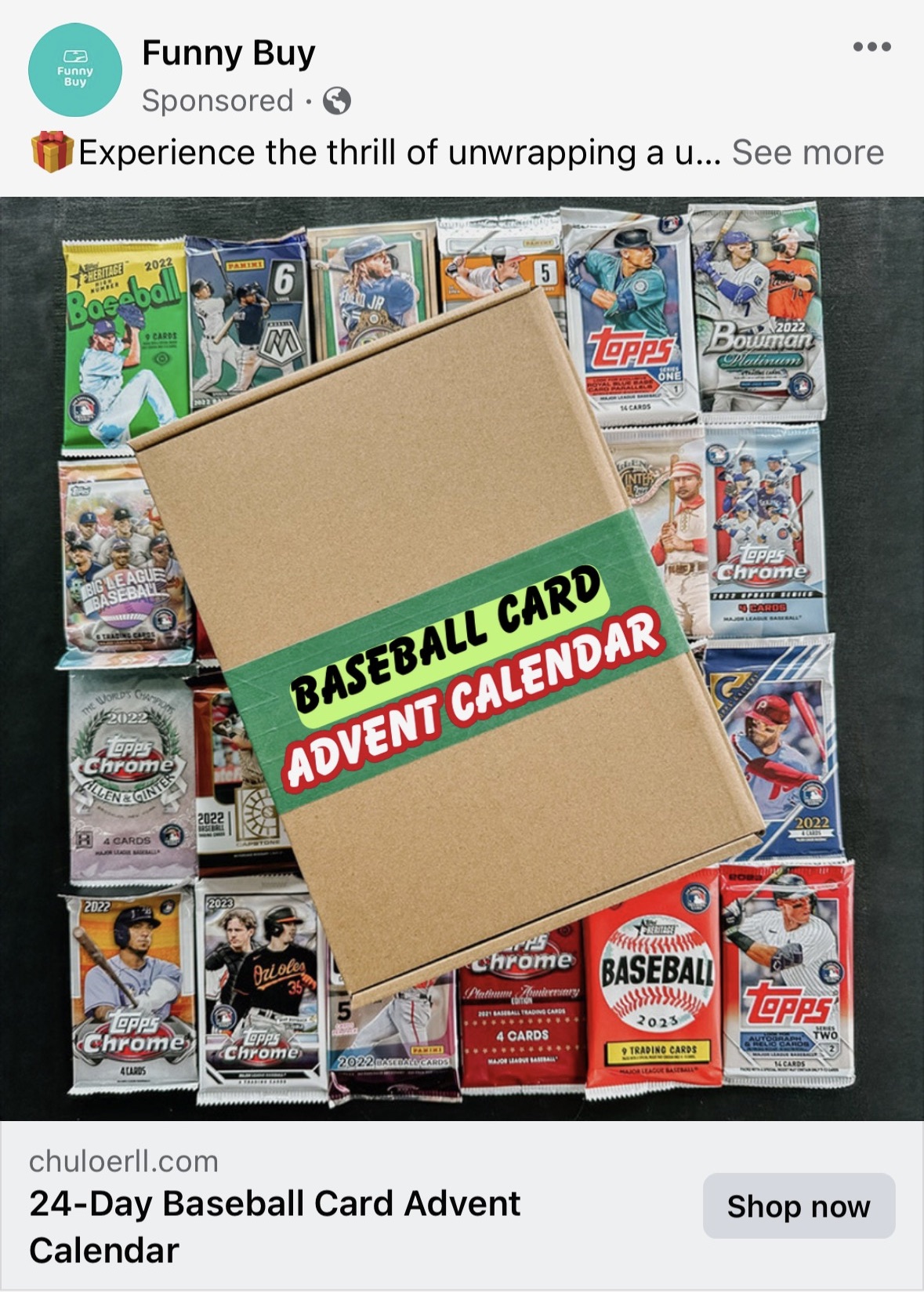 Last season, I had numerous reports of fake baseball card advent scams from our customers. If you see photos that look like these, please note they are an overseas scam. Unfortunately, you may never get your product, you may get it many months later, or you may receive fake cards that were printed on a home printer.